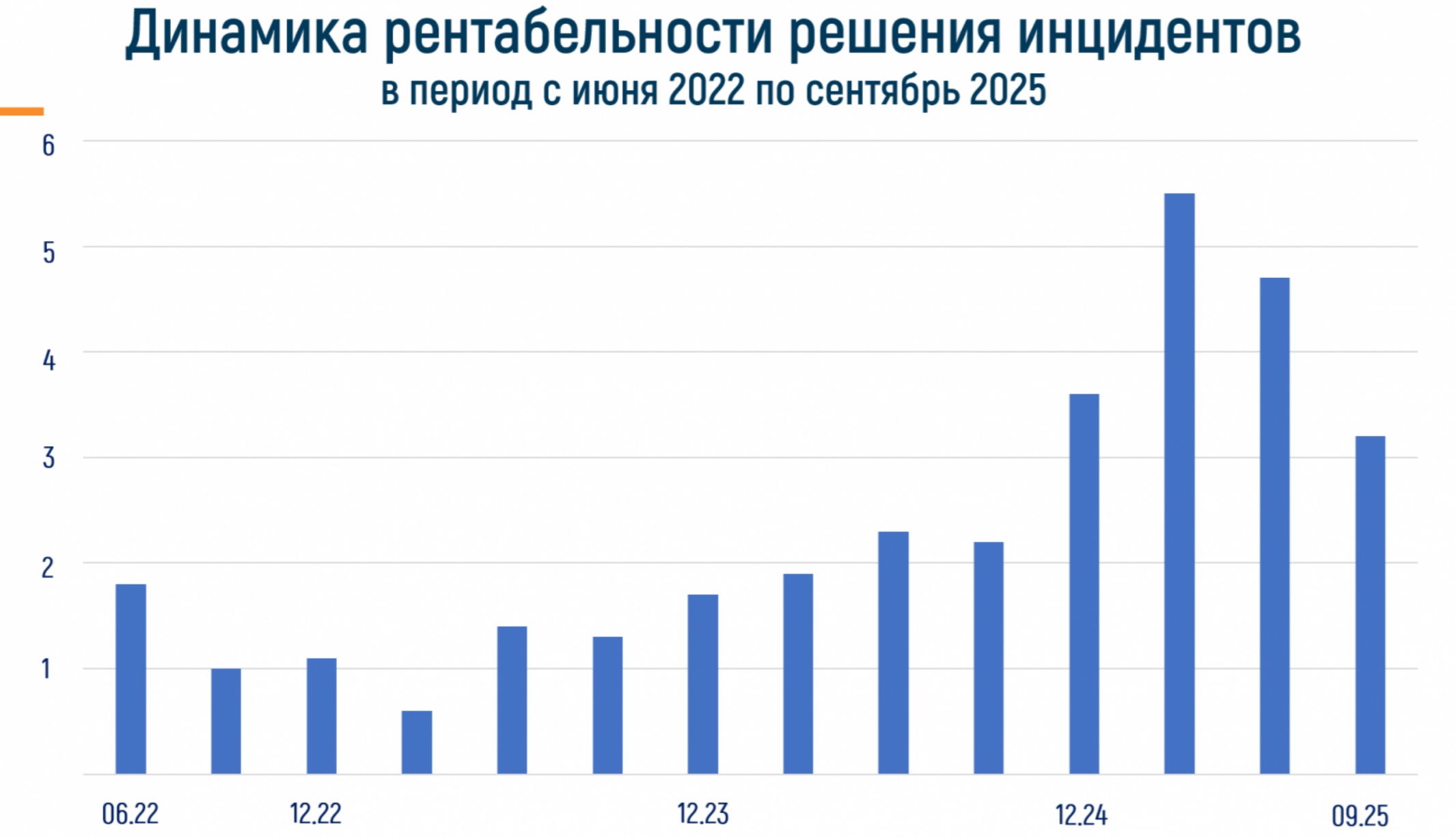 Что интересно, средняя трудоемкость решения одного инцидента за тот же период возросла примерно в полтора раза. Однако за счет снижения общего количества инцидентов при фиксированных ставках по договорам базового сопровождения рентабельность этих договоров возросла в несколько раз.